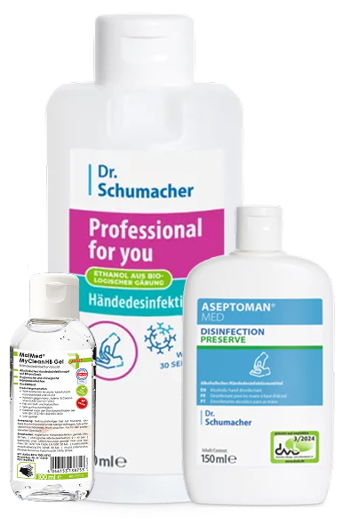 Handschuhe, Desinfektion und Unterlagen auf einen Blick
